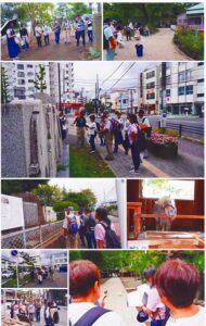 ▼ウォークの開始にあたり、当会顧問である諏訪間学芸員から平塚の名前の起こり、地形、相模国府として相模国分寺/尼寺(海老名)との関係、平塚駅開業後の大山参詣の経過等が広範囲に語られました。