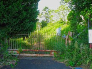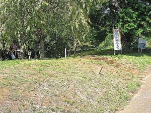 ▼「埒免古墳」の所。史蹟内は雑草で覆われていました。この古墳からの貴重な出土品は三之宮郷土博物館にて見ることができます。