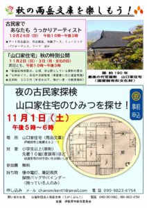 11月3日には普段目にすることが無い、文庫蔵内に保管されている文化財の展示もあります。秋の風を感じながら自然豊かな古民家で、ご家族の思いでの一コマを創られたら如何でしょうか!