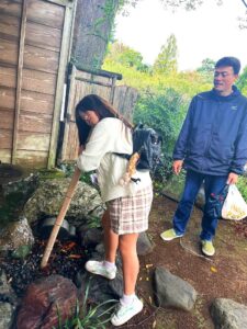 ▼外庭の離れの縁側では水琴窟の清らかな音を楽しみました。