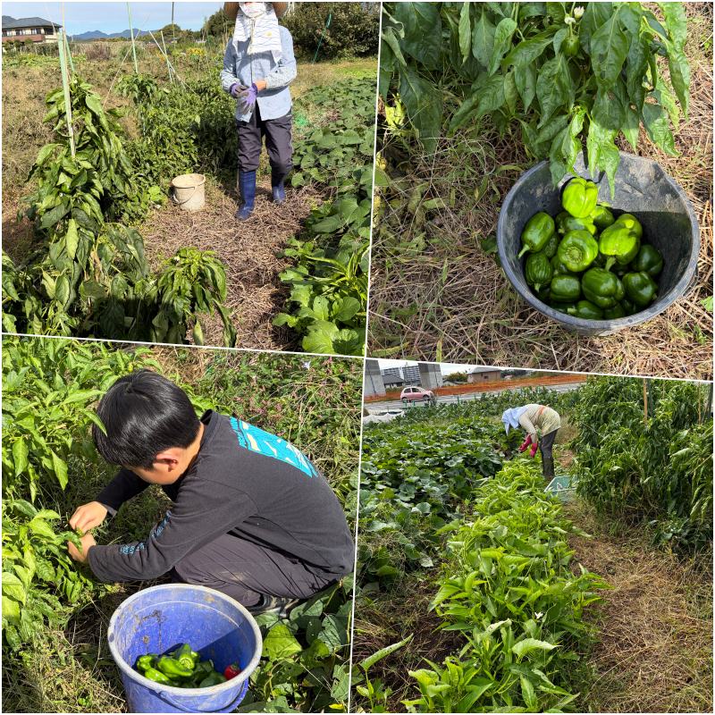 ミッション[5] ピーマン収穫。実によくなってくれたピーマンです。ジャンボピーマンの存在感は大きかったです。