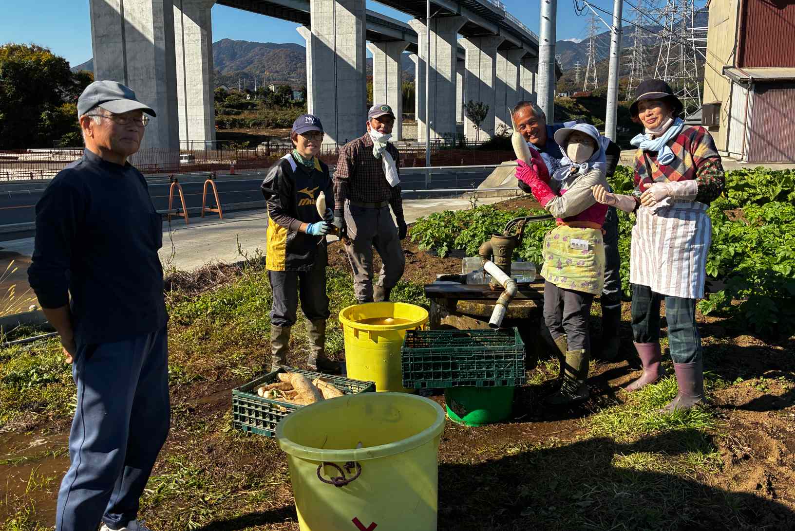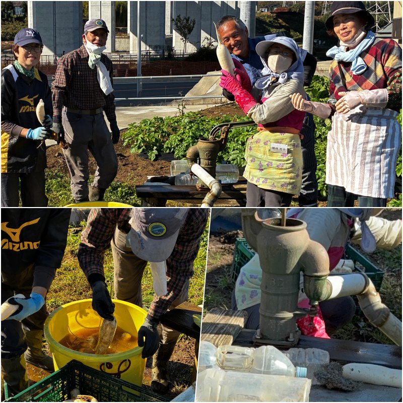 2025年(令和7年)11月22日(土)。良いお天気です。今年も東京のお漬物と言われている“べったら漬”作りに挑戦します。10年目になりました。べったら漬けに適した品種の「大くら大根」を収穫します。それほど太くも長くもない形状の大根です。畑にある井戸水で綺麗に洗います。