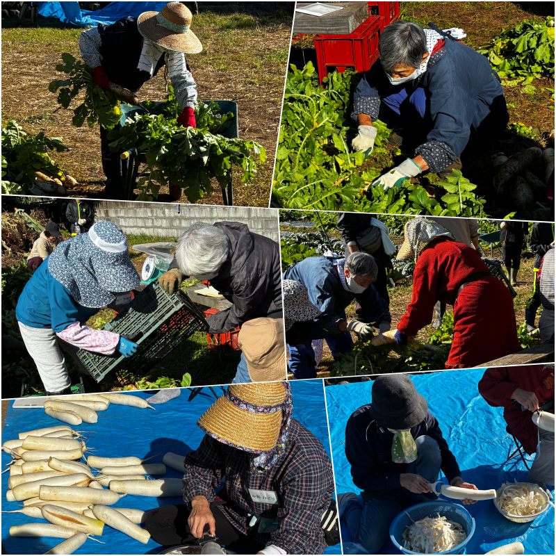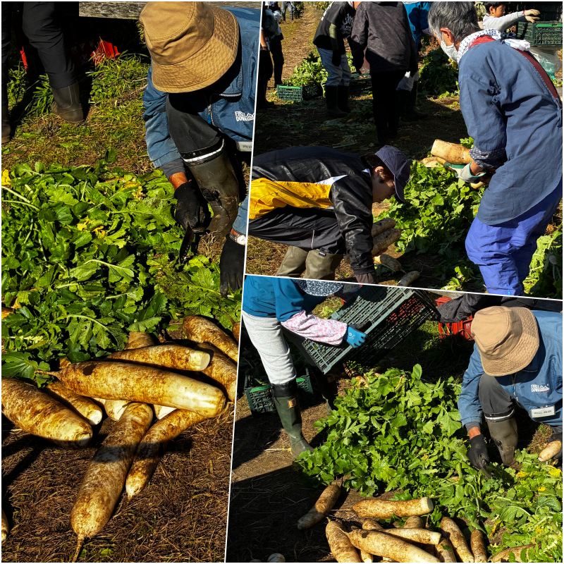 251122 西富岡の畑でべったら大根の収穫
