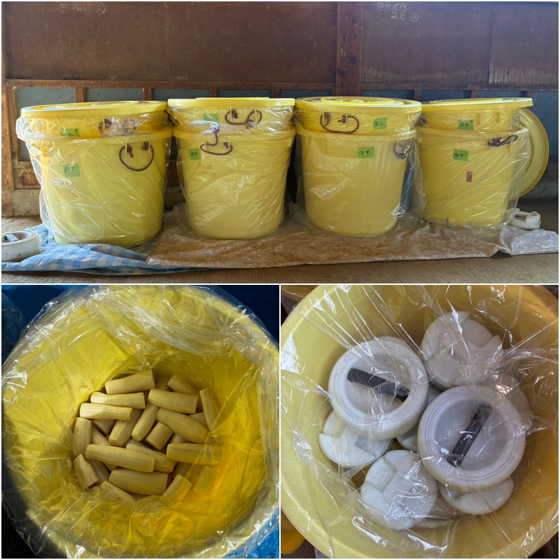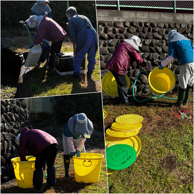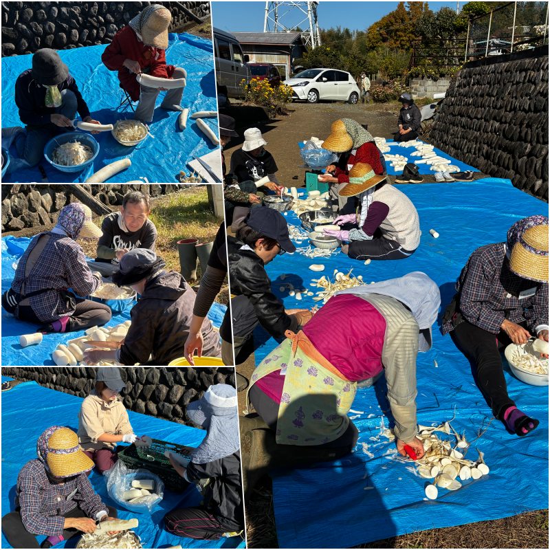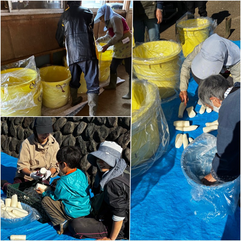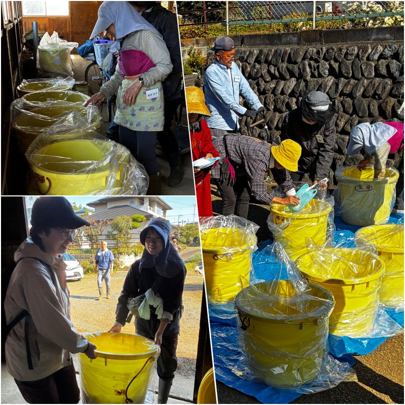 経験豊富な農婦(農夫)たちの連携プレーで塩漬けまでの作業が終了しました。2週間後に甘麹作りと本漬けの作業が控えています。