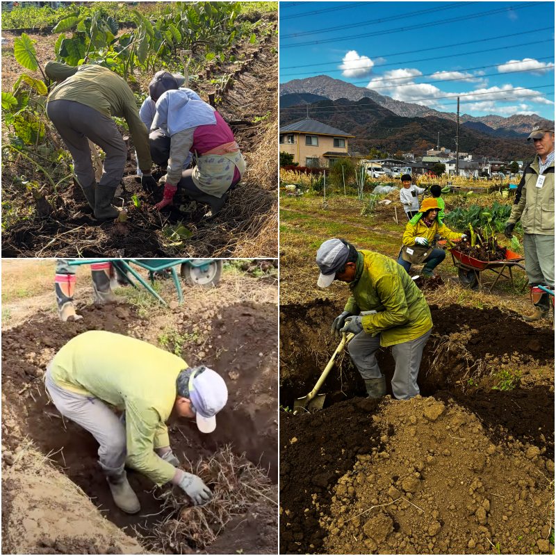 ◉参加人数:22名 ◉お土産:大根、里芋 ◉次回の予定:二手に別れます。①甘麹作り:9時半に雨岳文庫さん集合。②沢庵大根の収穫・計量・洗浄・干し。 年末の大仕事となります。皆様体調を整えてご参加ください。