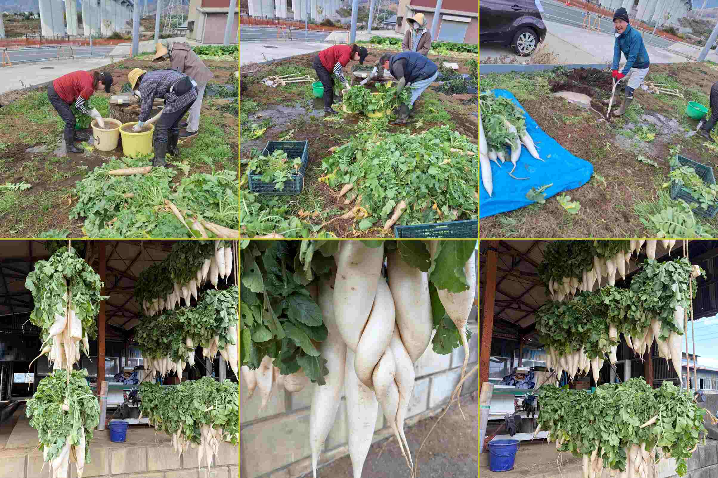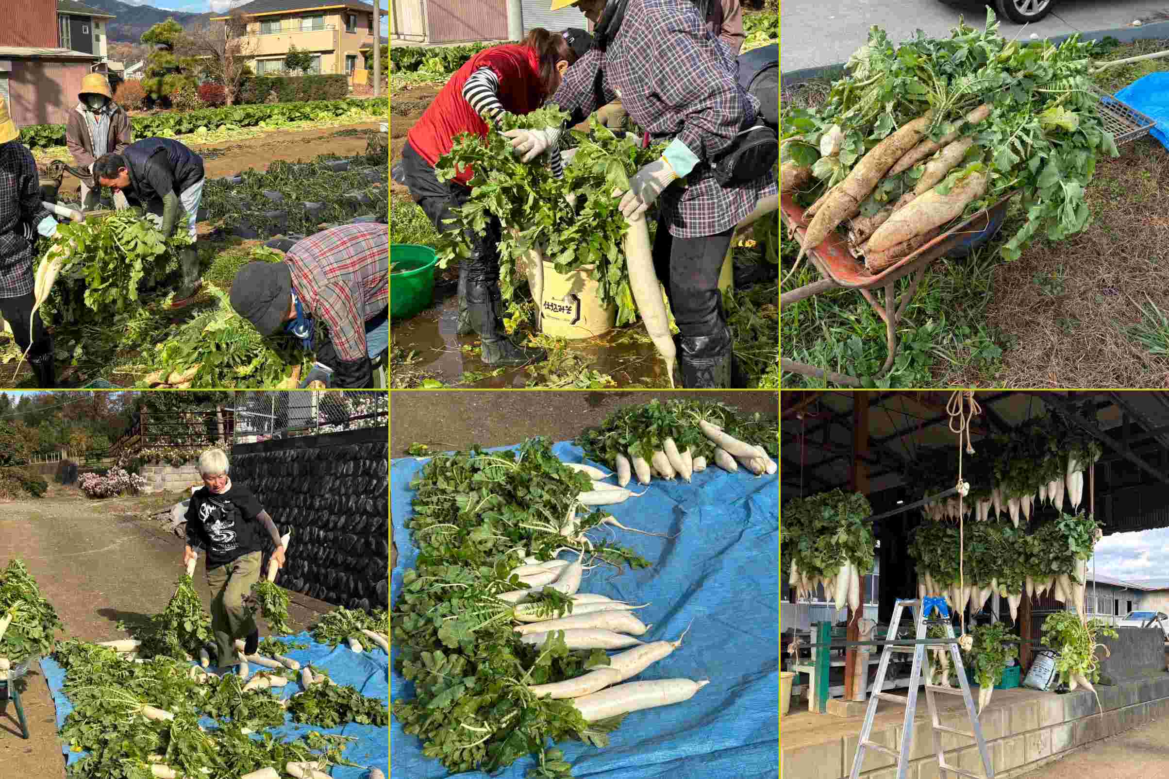 畑では昔ながらの沢庵を漬け込むために「練馬大根」の収穫をしました。