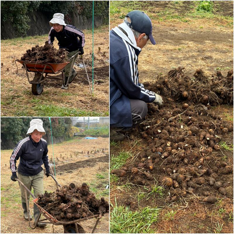 こちらも本日のお土産用の里芋です。力仕事が筋トレのような力強さが滲み出ています。