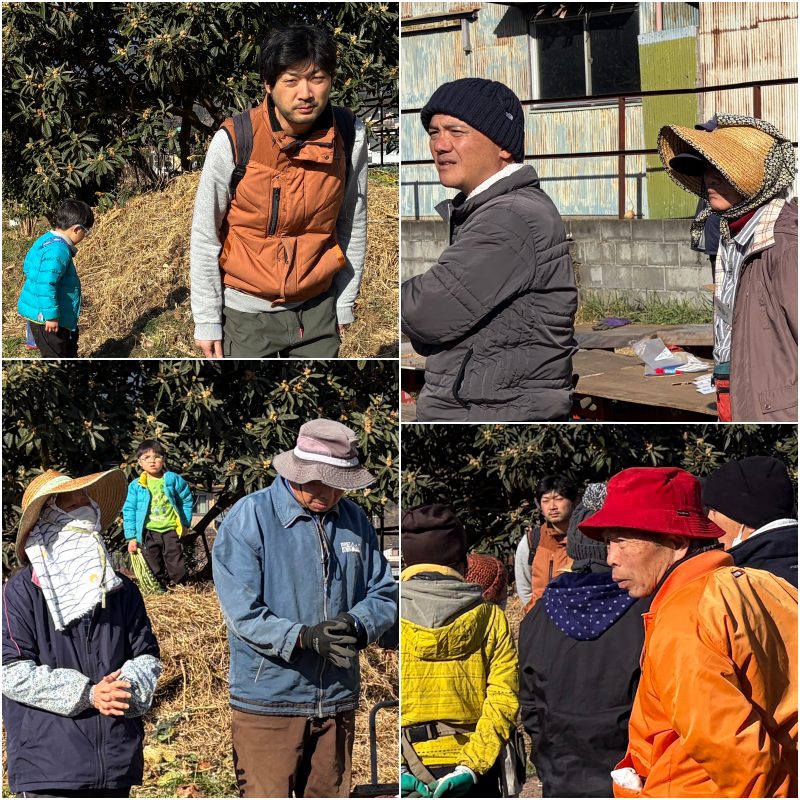 朝のミーティング。吉羽先生の北海道のご友人から送料込の無料でジャガイモの種芋をいただきました。感謝です。佐々木さんからジャガイモの植え付けは2月28日、14日にトラクターを入れ、21日に畝作りの予定です。玉ねぎがカラスのいたづら被害を受けていて、次回より対策が必要。事務局より柏木菊江さんの米麹販売(希望があれば定期的に)伊勢原森林組合の椎茸原木販売(年1回。過去の収量が少なすぎるのはお世話不足の為のようなので、散水管理の検討等が必要)