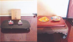 最初の写真は可愛いお雛様と貝合わせの拡大写真、続く2枚目は床の間の全体写真です。