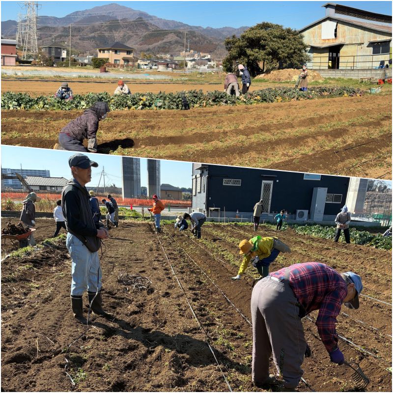 朝のミーティング前から作業を始めているメンバーがいました。今日のミッションはジャガイモの畝立て、そして植え付けです。