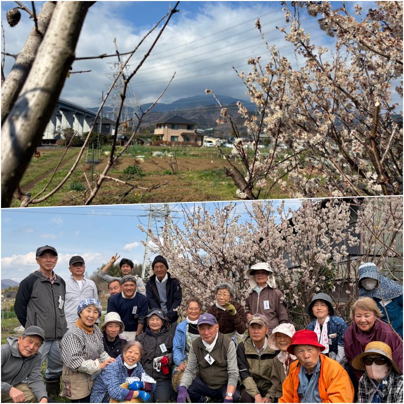 2026年(令和8年)3月7日(土)西富岡の畑には春が来ていました。大山を背にしてサクランボの実をつける桜が満開です。