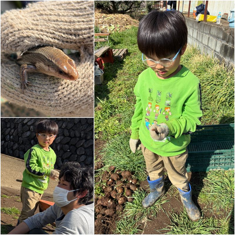 就学前の弟君はでっかいカナヘビに夢中でした。お父さんに家で飼ってもいいか説得中です。