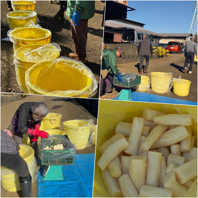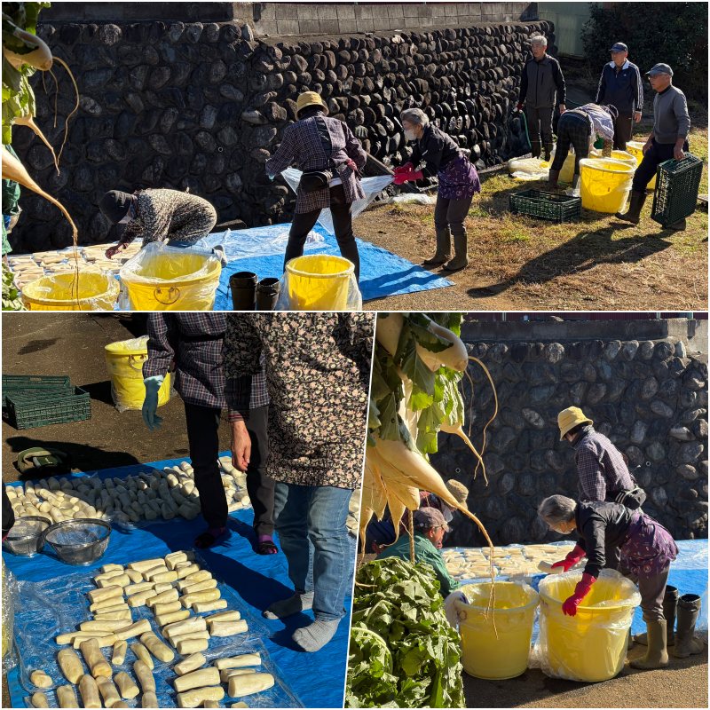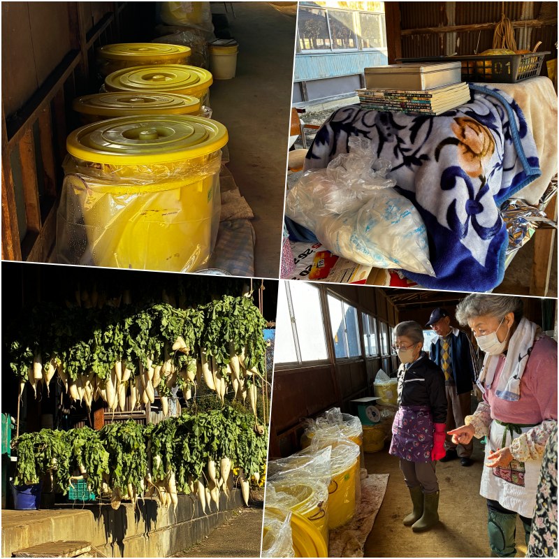 ◉参加人数:11名、お土産:ほうれん草 ◉次回の予定:12月20日、牛舎の大掃除、沢庵の本漬け、べったらの樽開け、最後に納会を行います。一品持ち込み大歓迎です。